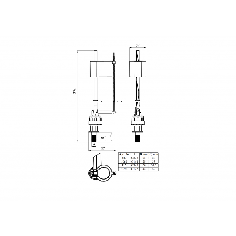 Galexhant, lidhje 3/8" bronzi, lartesi e rregullueshme - NK00276